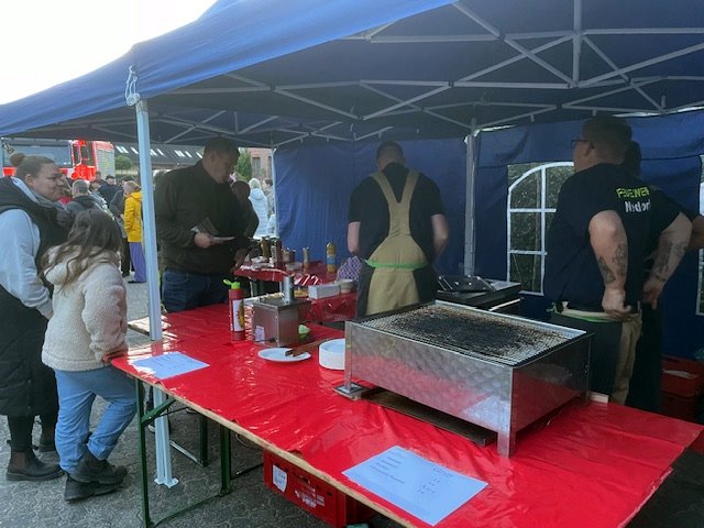 Hier kam der Umstand, dass die Feuerwehr Neudorf von Anfang an für die Sicherheit des Umzuges gesorgt hat und ihr Gebäude an einer verkehrsberuhigten Straße liegt sowie über einen geeigneten Vorplatz verfügt, zu Hilfe.